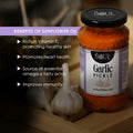Garlic (57%), Edible Sunflower Oil, Edible Common Salt, Split Mustard Seeds, Chilli Powder, Fenugreek, Acidity Regulator (INS 260), Turmeric Powder, Coriander Powder, Compounded Asafoetida, Cumin Powder.